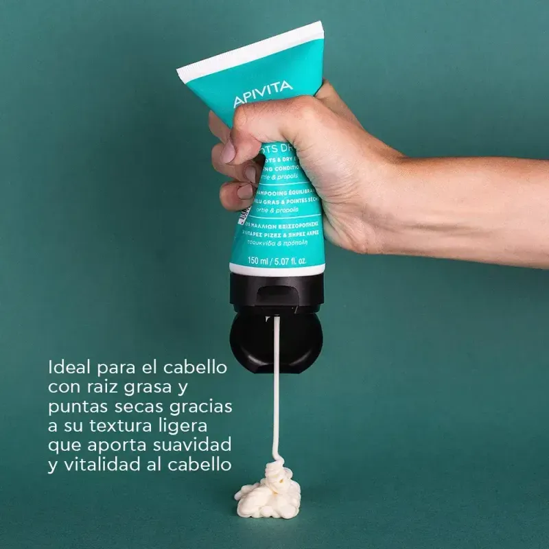 • Nutre y reequilibra el cabello con raíz grasa, gracias a los extractos de ortiga y propóleo.
