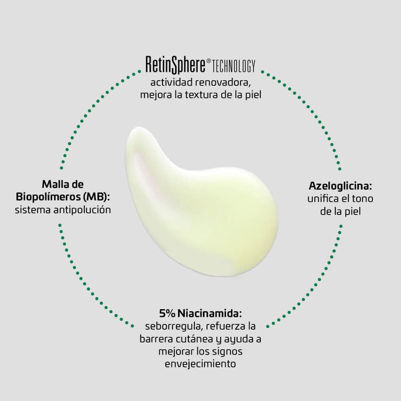 Tratamiento global dirigido a las necesidades específicas de las pieles adultas con imperfecciones y/o tendencia acnéica. Su fórmula combina la exclusiva tecnología RetinSphere® a base de retinol encapsulado con ingredientes clave para combatir las imperfecciones y mejorar la apariencia de signos de la edad.