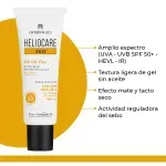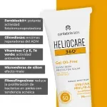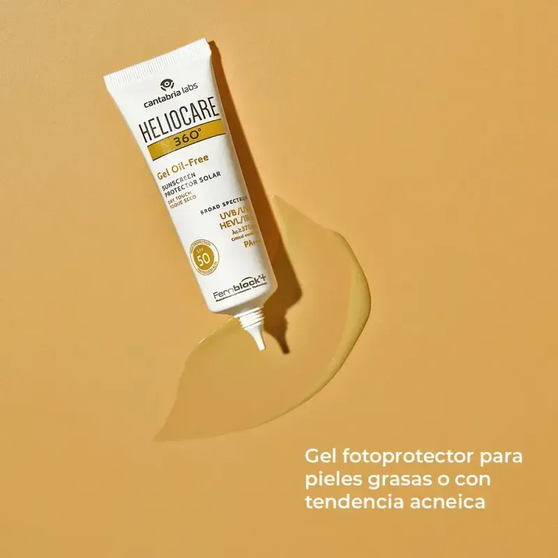 Heliocare 360º Gel Oil-Free SPF 50 es un Gel fotoprotector para pieles grasas o con tendencia acneica. Su fórmula no comedogénica y ligera en textura gel libre de aceites deja la piel suave, lisa y sin brillos tras su aplicación. Su complejo con doble acción matificante-seborreguladora hace que sea adecuado para las pieles grasas o con tendencia acneica, con un acabado mate y seco al momento. Cumple las más altas exigencias en materia de fotoprotección. Con Fernblock®+, filtros específicos y activos reparadores y antioxidantes, protege frente a las 4 radiaciones (UVB, UVA, Visible e Infrarrojo), neutraliza y repara el daño solar.