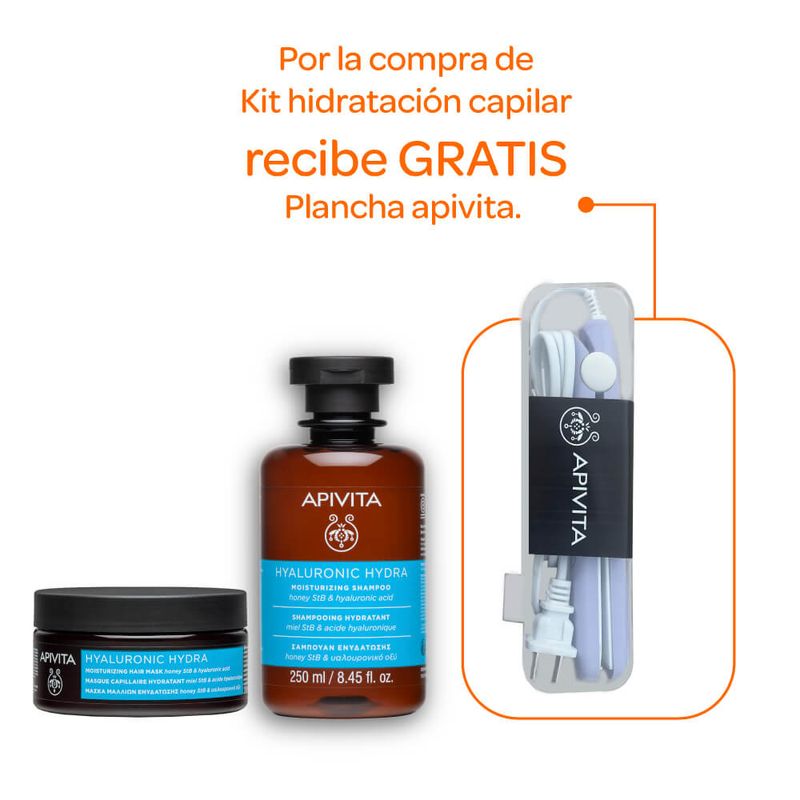 El Kit Apivita Hidratación Capilar Intensa combina shampoo y mascarilla para brindar una hidratación profunda y duradera al cabello seco, muy seco o dañado.