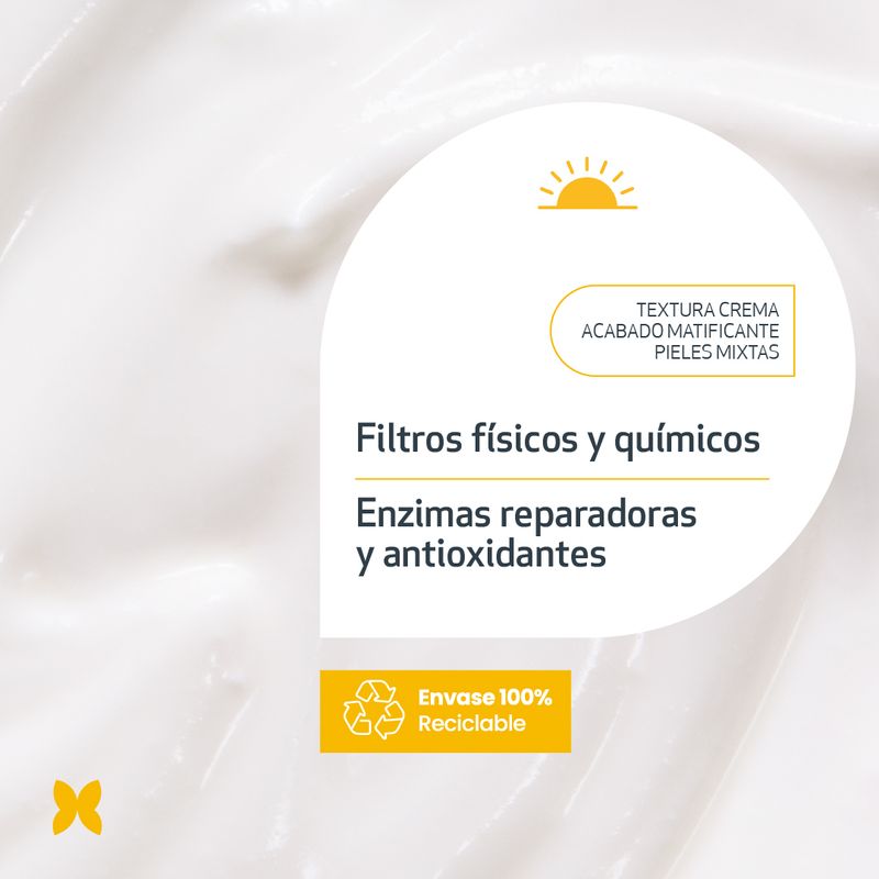 Formulada con filtros físicos y químicos, enzimas reparadoras y antioxidantes como Té verde.