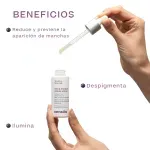 El primer serum despigmentante eficaz en pieles sensibles hiperpigmentadas con un 2% de Ácido Tranexámico y un 10% de Niacinamida, por su acción despigmentante.