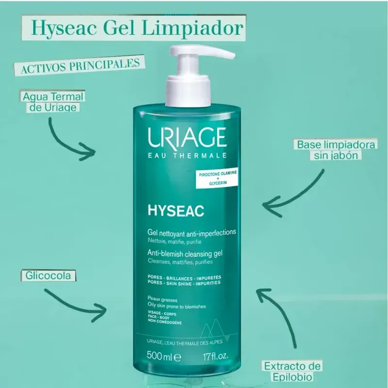 Agua Termal de Uriage Base limpiadora sin jabón Piroctona olamina Extracto de epilobio Glicocola